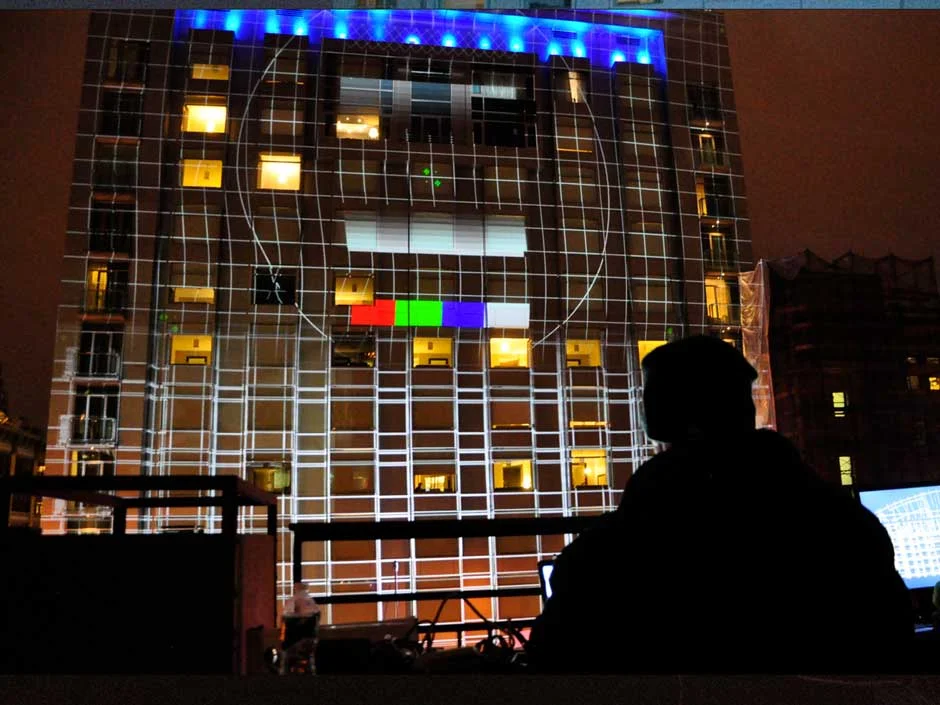 The installation utilized two 35K Christie projectors, shot from the roof of the opposing building onto the 15 story hotel façade. Content playback and management was powered by Float4’s Blackstone server and included a synchronized audio component that played at pedestrian street level.