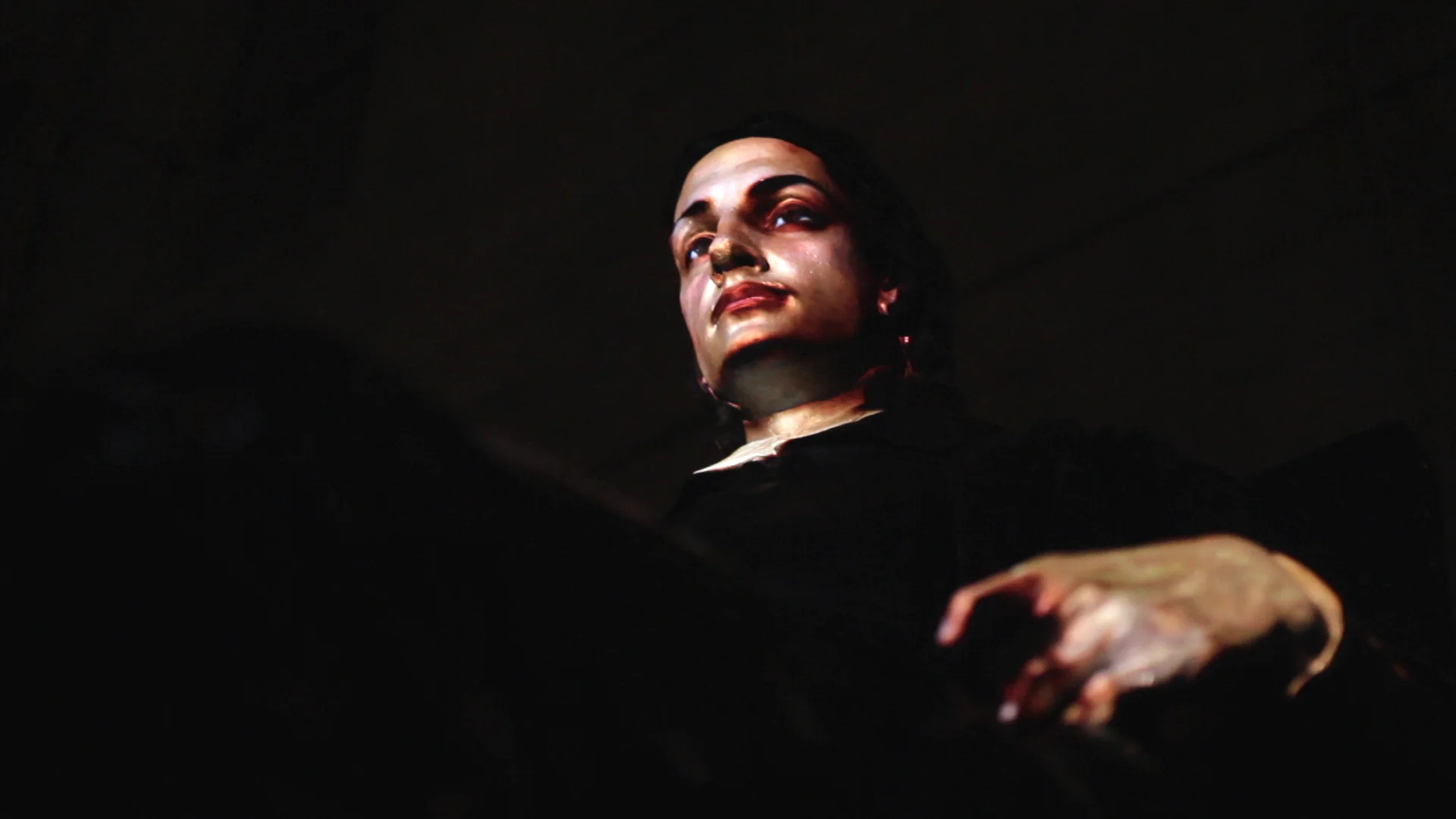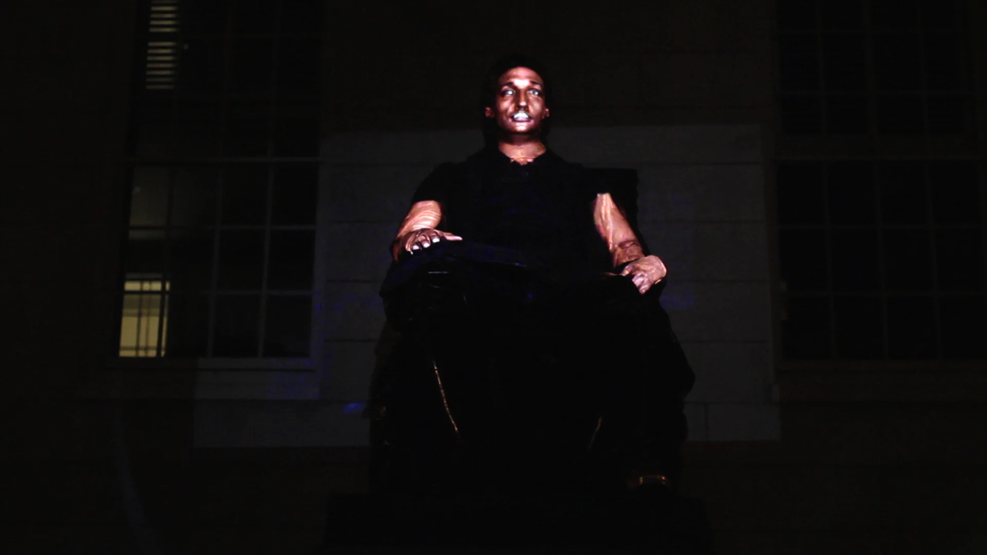 To create the projections, Materials + Methods worked closely with Wodiczko and his students from the Harvard Graduate School of Design to conduct interviews with the subjects. During filming, they were positioned to replicate John Harvard’s pose, their heads supported in place by a rig and their hands placed on armrests whose proportions mimicked those of the statue’s chair. Four different cameras captured each interview—three situated to the right, left and center of the subject and a fourth zoomed in to capture only the face. Afterward, segments from each video were edited in After Effects and warped onsite through a projection mapping program to combine the various angles and align perfectly with the statue’s features.