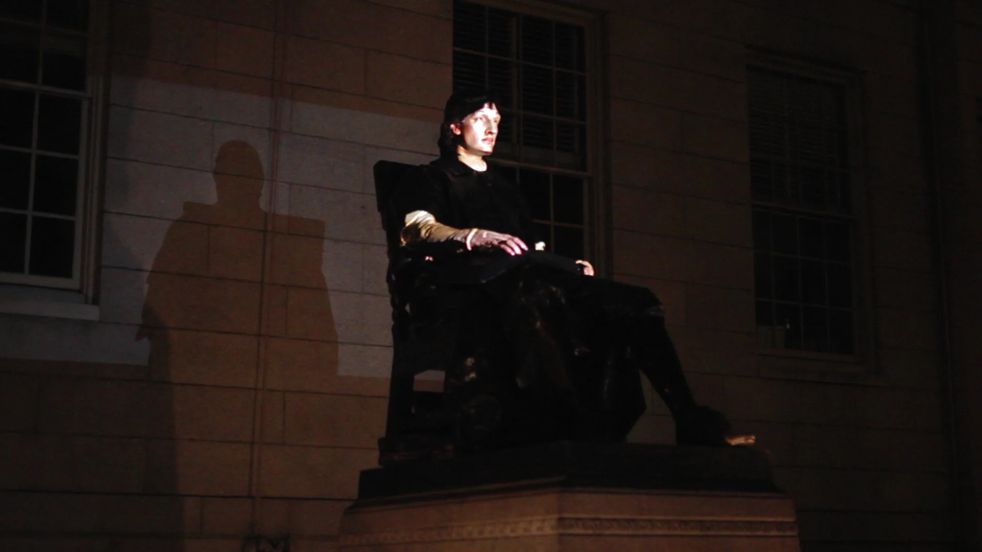 The “John Harvard Projection,” commissioned by Harvard University’s Committee on the Arts, brought together crowds of strangers passing through Harvard Yard throughout its run, facilitating a community experience and sparking dialogue in the center of campus.